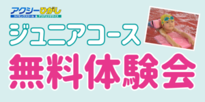 只今アクシーひがしではジュニアスイミング無料体験会の参加を受け付けています。