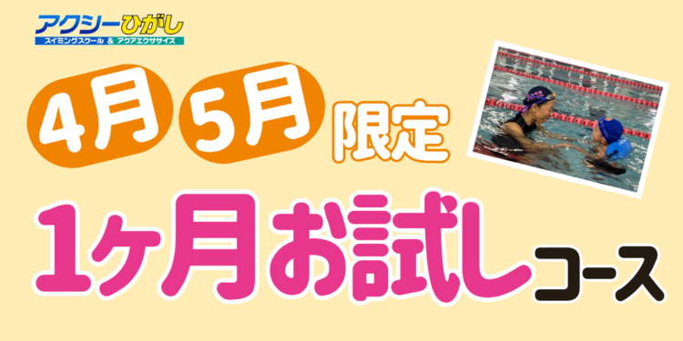 【1ヶ月お試しコース】続くかどうか心配なら、アクシーひがしの「1ヶ月お試しコース」がおすすめです!【4・5月限定】