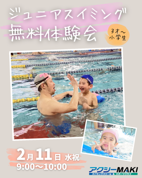 【ジュニアスイミング無料体験会】アクシーMAKIでわくわくドキドキを、自信に。